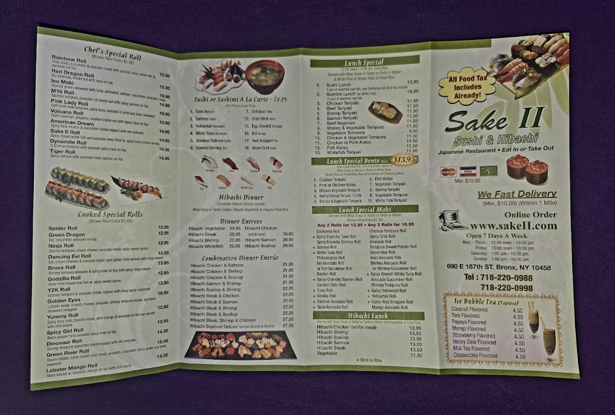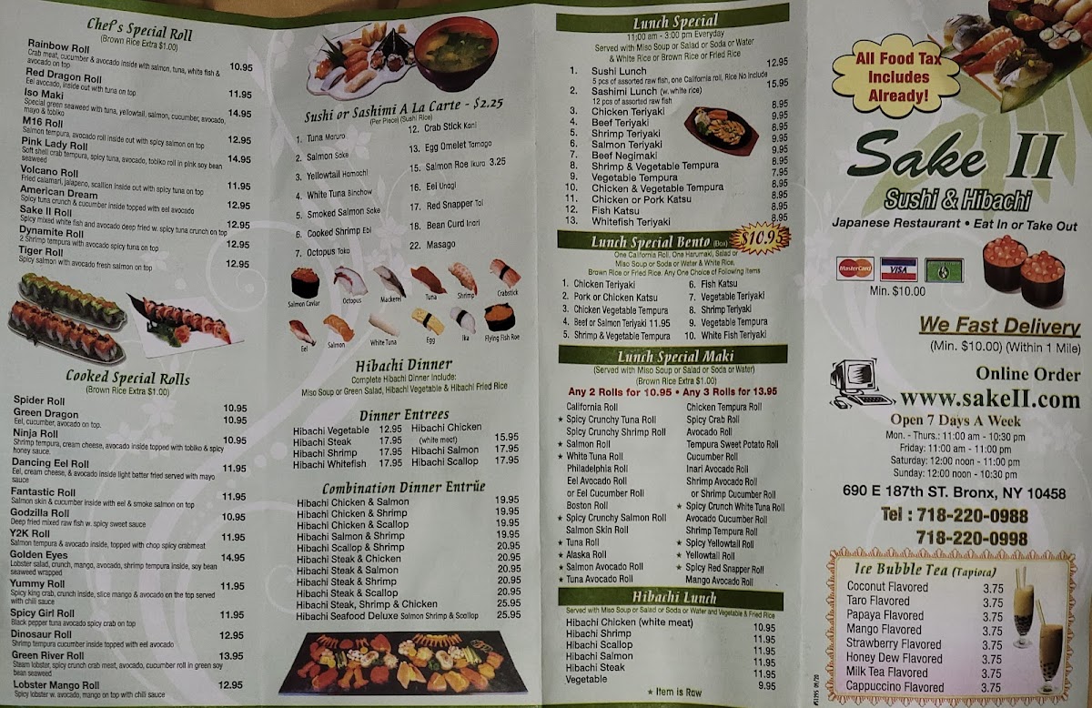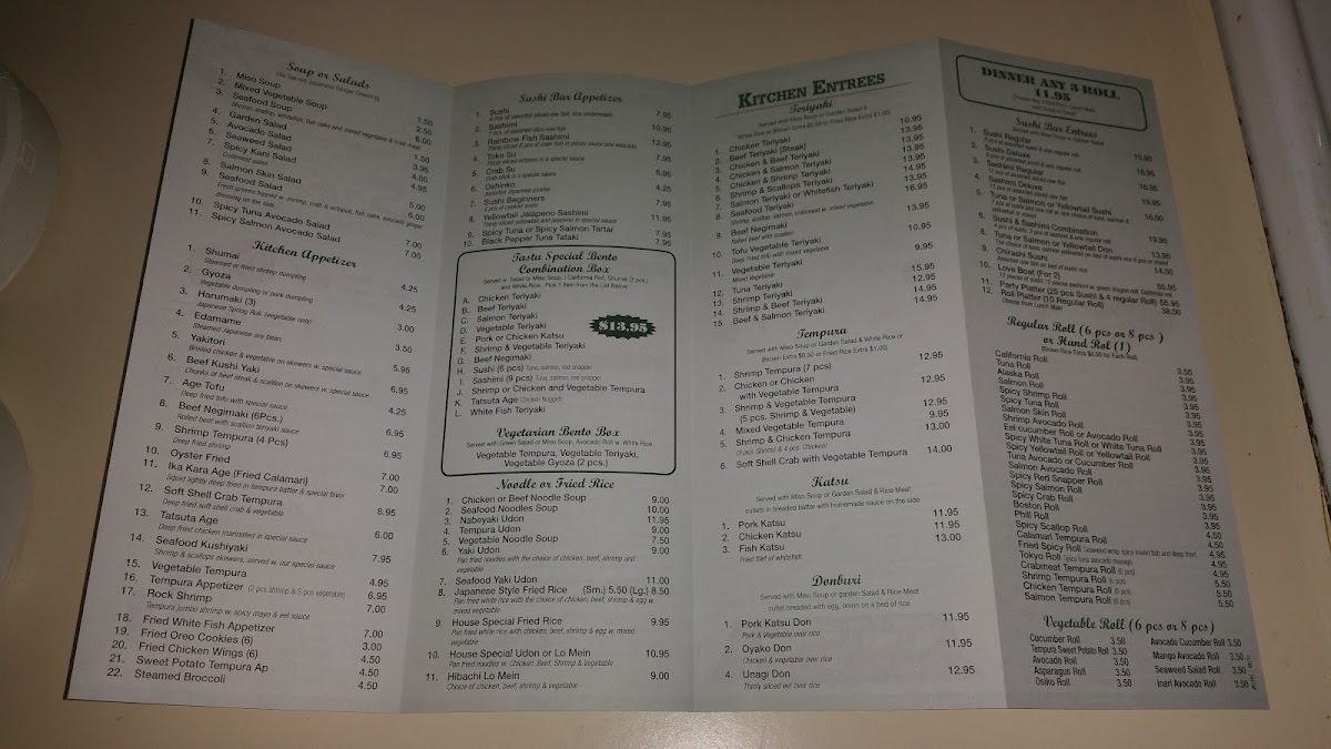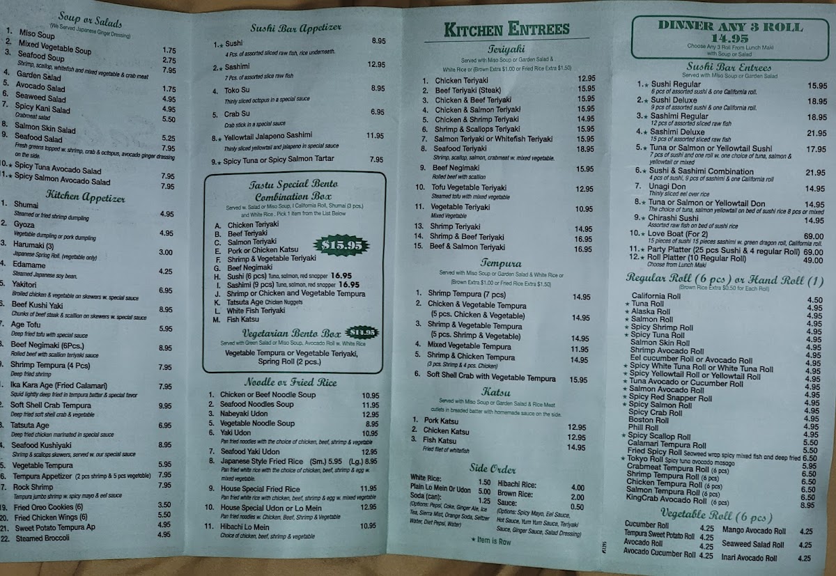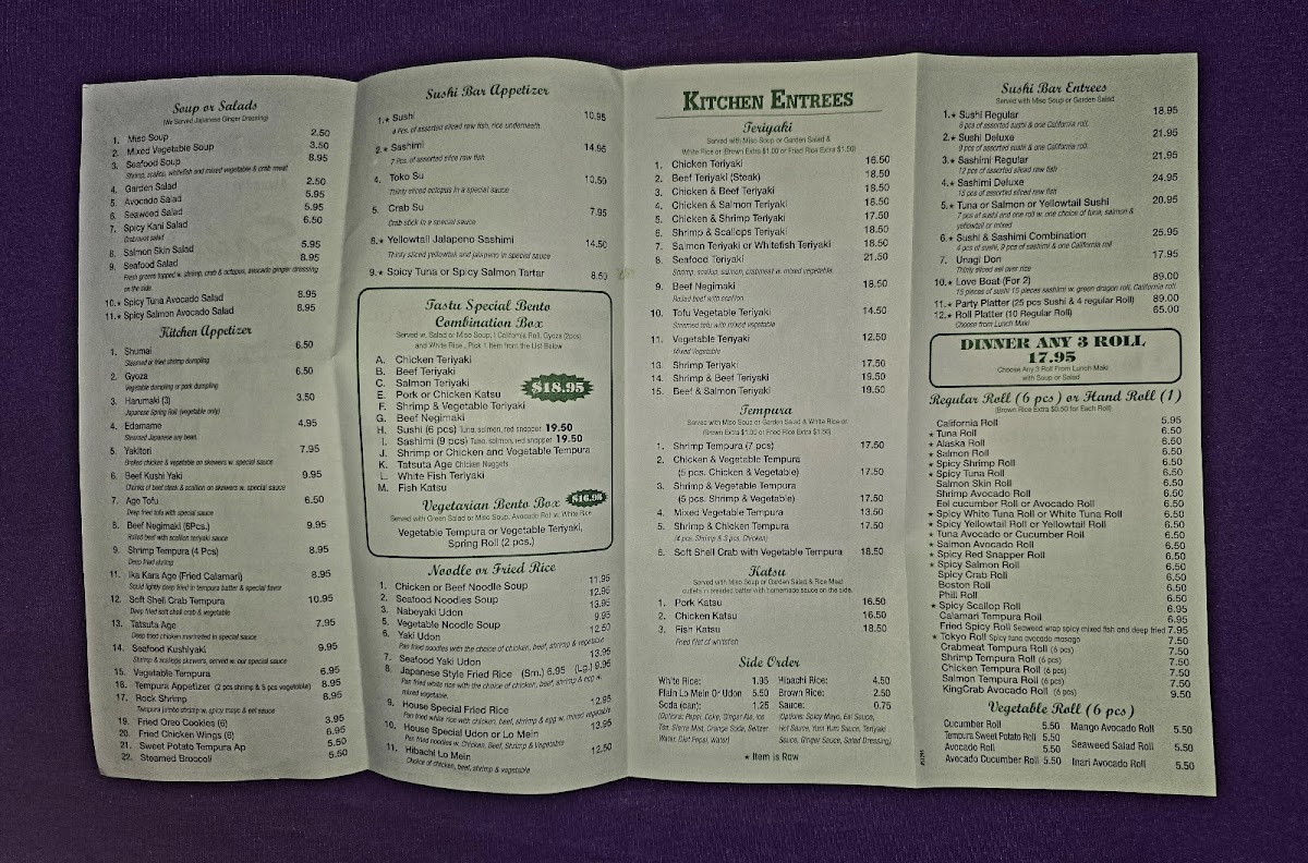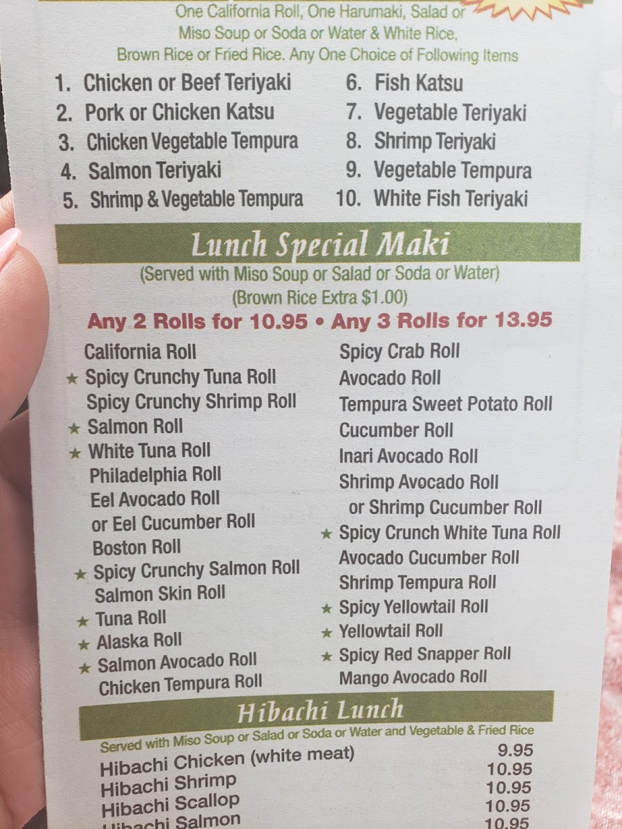 Tuna, Avocado, Tempura Sweet Potato, Eel, or Spicy Rolls.